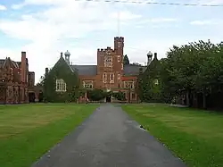 Loughborough is set within a multi-acre campus on the south side of the town centre; it occupies a site adjacent to Loughborough High School and Fairfield Preparatory School, laid out along Burton Walks. Loughborough Amherst School (formerly Our Lady's Convent School) is situated on Gray Street, about 5 minutes' walk away from the main campus. The core of the LGS campus is the quadrangle, on the eastern side of Burton Walks. Dating from 1850, Big School, consisting of the Victorian Gothic tower, original gymnasium and hall are at the head of the quadrangle, nowadays accommodating the History department, Chapel and Sixth Form common room, and are the oldest buildings on the current site. The quadrangle is completed by School House (the senior boarding house, which was built as the Headmaster's residence), the Queen's Building (1995, English and Drama), the Barrow Building (c. 1910, Classics and Modern Languages), the Cope Building (2000, Modern Languages) on the north side and the Library and old laboratory buildings (now housing Computing and Religion and Philosophy) on the south side. Big School and School House are both grade II listed, as is the gatehouse[11]