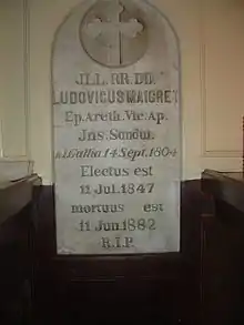 Louis-Désiré Maigret, SS.CC. (September 14, 1804 – June 11, 1882), served as the first vicar apostolic of the Vicariate Apostolic of the Sandwich Islands, now the Roman Catholic Diocese of Honolulu.[1] Born in Saint-Pierre-de-Maillé, France, Maigret was ordained to the priesthood as a member of the Congregation of the Sacred Hearts of Jesus and Mary on September 23, 1828, at the age of 24. As part of his missionary work, Father Maigret sailed to the Kingdom of Hawaiʻi to help build its Catholic community of native Hawaiians.