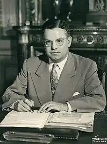 Aujoulat assisted the UN General Assembly in 1946, as a counselor of the French delegation and intervenes on 13 December to approve trusteeship agreements in Togo and Cameroon. In November 1948, he abandoned the MRP, thus becoming an independent. Aujoulat was appointed Deputy Secretary of State for Overseas France from 29 October 1949 to 17 February 1950, then Secretary of State for Overseas France from 2 to 12 July.[1]
