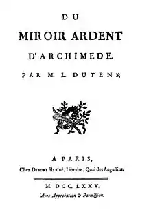 - 1 2 3 One or more of the preceding sentences incorporates text from a publication now in the public domain: Chisholm, Hugh, ed. (1911). "Dutens, Louis". Encyclopædia Britannica. Vol. 8 (11th ed.). Cambridge University Press. p. 736.