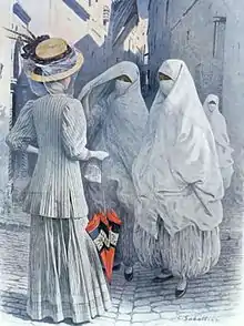 Sabattier began work collaborating on creation of large panoramas, notably of Rezonville and of Reichshoffen.[2] He became a member of the Société des Artistes Français in 1890.[4] Sabattier's first drawings of Parisian life appeared in l'Illustration in 1895.[1] For l'Illustration he traveled to Tonkin, Russia, Abyssinia and then Morocco with Hubert Lyautey.[2] In 1912, he completed a long journey in China, visiting Shanghai, Tianjin and Beijing at a time of political upheaval.[4]