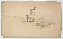 ![]() 1842 sketch of the Bougainville grave and tree | |