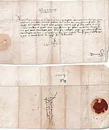 Letter by Louis XI as Dauphin to the Bishop of Grenoble; Montbeliard, December 30, 1444