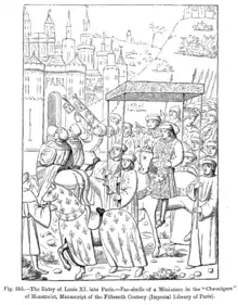 The Entry of Louis XI into Paris. – Facsimile of a Miniature in the "Chroniques" of Monstrelet, Manuscript of the Fifteenth Century (Imperial Library of Paris).