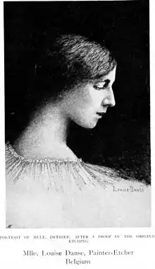 She was the daughter of the engraver Auguste Danse who was her first teacher. Her sister Marie Danse was also a painter. Her mother was the sister of the painter Constantin Meunier. Louise was a painter but is better known for her etchings, which were published by her husband, the publisher Robert Sand (1876-1936).