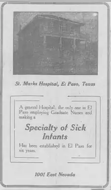- ↑ "St. Marks Maternity Hospital, 1427". El Paso Herald. 1907-09-25. p. 8. Retrieved 2020-11-16 – via Newspapers.com.