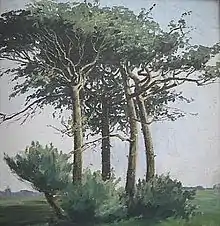 After finishing school, Droste-Roggemann decided to become an artist. She was able to finance her education and other trips from an inheritance. Around 1890, she left her parents' home and travelled to Weimar and Dresden. Both cities had art academies, whose teachers gave private painting and drawing lessons as an additional source of income. Since women were not yet admitted to art academies, private classes were the only available option for Droste-Roggemann. She probably lived in Dresden between 1890 and 1891, where she became acquainted with the Oldenburg painter Bernhard Winter, who went to the Kunstakademie Dresden in 1887 and studied painting there until 1891. Until 1900 Droste-Roggemann undertook many study trips, on which she created oil paintings and pencil sketches. She created many pencil sketches with location details of her excursions to the mountains in Scandinavian countries.