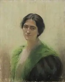 Smith was active as an artist in Lynchburg, Virginia in the late nineteenth and early twentieth centuries.[1] In 1895 she and Bernhard Gutmann founded the Lynchburg Art League.[2] During the 1890s she studied art in Paris for two years, and during that same decade she became chairman of the art department at Randolph-Macon Woman's College.[1] A cousin of the institution's first president, William Waugh Smith,[3] she held that "the only way to develop taste in art is to study paintings frequently, seriously, and at leisure,"[4] and it was she who suggested William Merritt Chase as the artist for his formal portrait, presented to the school in 1907 by the senior class of that year.[5] The first art professor on the college's faculty,[6] it was she who instigated the purchase of Men of the Docks by George Bellows in 1920, an event which marked the foundation of the school's Maier Museum of Art.[7] It was also under her direction that the college held its First Annual Exhibition in 1911, believed to be the first exhibition of modern art held on a college campus anywhere in the United States.[8][9] Furthermore, in 1893 Smith opened her lectures to the women of Lynchburg, which one source claims may have been the first organized system of adult education in Virginia.[8] During her academic career Smith also taught French at the College, and invited prominent artists of her acquaintance to come and speak to the student body.[10] At her death she was buried in the Warrenton Cemetery in Warrenton, Virginia.