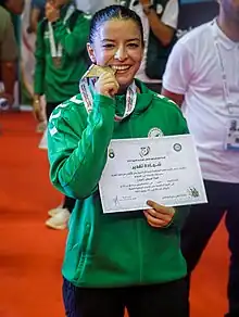 ![]() Abouriche Louiza, winner of the 2023 Pan Arabe Games in karate -55kg. | |||||||||||||||||||||||||||