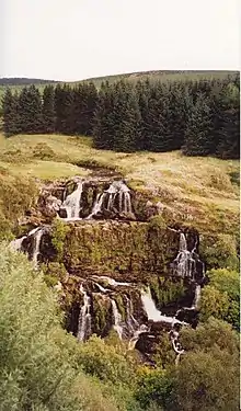 Loup of Fintry is a notable waterfall on the River Endrick around 2 miles to the east of Fintry in Scotland and 17 miles from Stirling, 10 miles from Denny. The total height of the waterfalls is 28.6 m (94 ft) Lowp or "Loup" means leap in Scots.