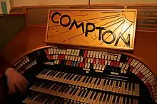 The theatre organ console in the town hall