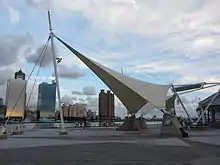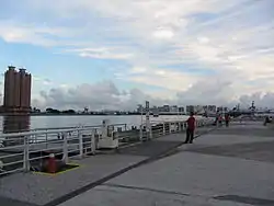 The pier is famous for its double sail design.[2] It also houses the South District Police Department movie set building, made for the Taiwanese series Black and White.[3]