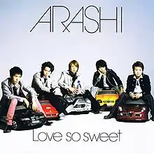 "Love So Sweet" is a Japanese song, and the eighteenth single, by the Japanese boy band Arashi. The single was released in two editions: a regular edition containing a bonus secret track and karaoke versions of the songs released in the single, and a limited edition containing a bonus track entitled "Fight Song". With its lyrics written by Arashi and music composed by member Kazunari Ninomiya, it was created in 2006 as an image song for the group's variety show G no Arashi.[1]