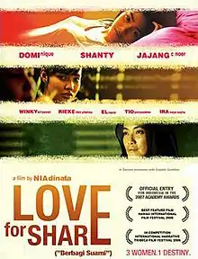 Love for Share (Indonesian: Berbagi Suami) is a 2006 Indonesian film directed by Nia Dinata. It tells three interrelated stories. It was submitted to the 79th Academy Awards as Indonesia's official submission for the Best Foreign Language Film, but was not nominated.[1] The film received Golden Orchid Award as Best Foreign Language Film at the Hawaii Film Festival in 2007.