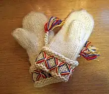 Lovikkavante ('Lovikka Mitten') is a noted Swedish glove or mitten originating from the village of Lovikka, in the district of Junosuando by Torne (Finnish and Swedish river) in Pajala Municipality, Norrbotten in Northern Sweden. It is a knitted wool mitten manufactured and designed in accordance with the pattern established by its creator Erika Aittamaa in 1892, especially designed for the cold climate of Northern Sweden.[1][2] The village of Lovikka has a small museum dedicated to the history and design of the mittens.[3]