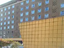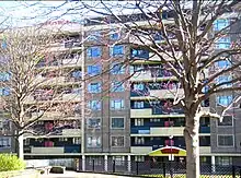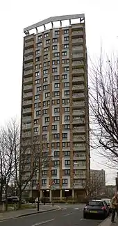 Tecton's housing projects included private houses in Sydenham, the already mentioned modernist terraces[6] at 85-91 Genesta Road in Plumstead, south London, and seven houses at Sunnywood Drive, Haywards Heath [7] and most famously the Highpoint apartments in Highgate. Highpoint One was singled out for particular praise by Le Corbusier, while Highpoint Two exhibited a more surreal style, with its patterned facade and caryatids at the entrance.