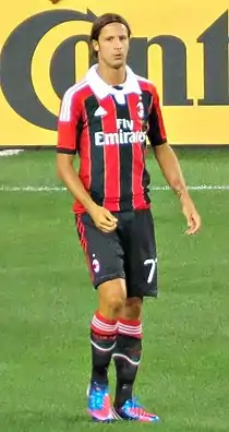 His valuable performances also persuaded the club to offer him a contract extension until 2014, which was signed on 11 February 2010.[16][17] He finished his second year at Milan on a high, scoring his first goal for the Rossoneri in the last match of the season, a home game against Juventus, on 15 May 2010.[18]