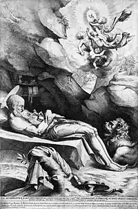- St. Jerome dead, lying upon a stone; after the same. (pictured)