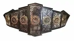 ![]() The championship belt with all seven medallions in place | |||||||||||||||||||||