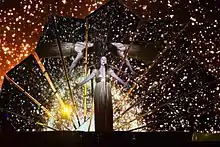 Jones's performance was shown in excerpt at the first semi-final of the Eurovision and, following this, betting odds went on to surge.[11][12] At the Grand Final Jones performed eighteenth in the running order and then, in the second half of the final, went on to score 111 points through combined voting from the jury vote and the popular vote. Jones also managed to score 12 points from the Australia professional Jury.[13][14][15] An article in the International Business Times stated that she blamed Brexit for the "disappointing" result though Jones said in a televised interview with the BBC that she had noticed no effect from Brexit in the attitude towards her from fellow contestants and fans of the show.[16]
