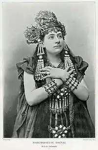 Bréval became a principal soprano at the Paris Opéra and remained there until 1919.[3] Her roles with the company included several world premières including Augusta Holmès's La Montagne Noire (1895), Camille Erlanger's Le fils de l' étoile (1904), DukasAriane et Barbe-bleue (1907), Massenet's Bacchus (1909), and the title roles in Massenet's Ariane (1906) and Henry Février’s Monna Vanna (1909). She also was Kundry in France's first performance of Wagner's Parsifal (1914). Her other notable roles at the Paris Opera included Brünnhilde in Richard Wagner's Die Walküre (1893), Venus in Wagner's Tannhäuser (1895), Marguerite in Hector Berlioz's La damnation de Faust (1897), and the title role in Rameau's Hippolyte et Aricie (1908).[1]
