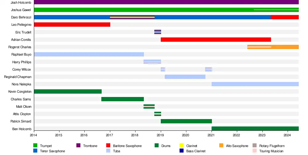 Please note this timeline starts in 2014 when the band began playing professionally, not in 2006 when the band was formed.