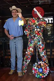A founding board member of the American Yo-Yo Association, he continues to serve as chairman of the world records committee. Meisenheimer is best known for his book Lucky's Collectors Guide to 20th Century Yo-Yos and his Guinness World Record for the largest yo-yo collection. A copy of Lucky's Collectors Guide to 20th Century Yo-Yos is part of the Smithsonian Institution collection. He also created the parody poster "Lucky's Periodic Table of Yo-Yos" and Mr. Bandalore, a statue made of 603 different yo-yos.[8][9] His yo-yo collection also features the world's largest wooden yo-yo, the Shakamak Yo-Yo, which is 6 feet tall and weighs 820 pounds.[10]