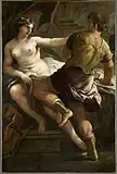 There is a quite different picture in the storage of the Louvre, catalogued as Lucretia and Tarquin (French: Lucrèce et Tarquin), dated to the first quarter of the 17th century and attributed to the workshop of Giordano.[6] This picture was once part of the art collection of Louis La Caze (1798–1869), which he bequeathed to the Louvre.[6] Another picture by Luca Giordano on this subject is in a private collection.[7]