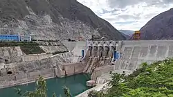 The Ludila Dam(鲁地拉水电站 in Chinese) is a gravity dam on the Jinsha River near Lijiang in Yunnan province, China. The primary purpose of the dam is hydroelectric power generation and it will support a 2,160 MW power station.[1] Construction on the dam began in 2007 and was briefly halted in June 2009 by the Ministry of Environmental Protection after it was being constructed without approval.[2] On 13 June 2013 the dam's first generator became operational.[3] In May 2014 reports surfaced that the dam and been damaged or was structurally unsound, forcing engineers to draw down the reservoir level and leaving the power station inoperable.[4][5] An estimated 16,900 people were relocated after its construction.[6]