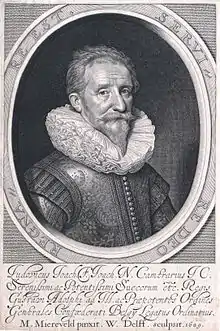 Ludwig Camerarius (22 January 1573, in Nuremberg – 4 October 1651, probably in Heidelberg) was a German statesman, lawyer, minister and head of Frederick V's government-in-exile in the Hague. He also served Swedish interests later in his life. He was the son of the scholar Joachim Camerarius the Younger and grandson of Joachim Camerarius the Elder.