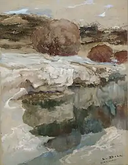 Of particular importance to his career was his friendship with Adolf Hölzel, who ran an art school in Dachau, the site of an artists' colony. The area, with its many moors and watercourses, was instantly attractive to Dill.[2] In 1896, he bought a small house there on a street which has since been named after him. Together with Hölzel and Arthur Langhammer, he founded a group called "New Dachau".[3]