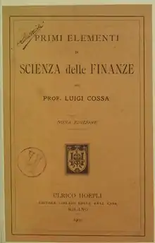 - ↑ Cossa, Luigi (1896). Horton, Samuel Dana; White, Horace; Schuyler, Eugene (eds.). Taxation, its Principles and Methods. Translated by Gumlogsen, A.M. New York & London: G. P. Putnam. Retrieved 14 September 2023.