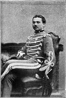 On December 31, 1871, he was admitted to the staff course at the Turin War School, which he completed in August 1873,[1] ranking second out of thirty candidates. Assigned to the 18th Cavalry Regiment, he was immediately sent on a mission to Germany to participate in major cavalry manoeuvres. He returned to Italy in October 1873 and was promoted to major in the 19th Cavalry Regiment.[1] He entered the General Staff and was appointed, on November 1 1874, military attaché at the Vienna Embassy, where he remained until December 31 1877, with the exception of a brief period in November 1876 when he was part of the international commission responsible for establishing the Turkish-Serbian armistice.[1][2]