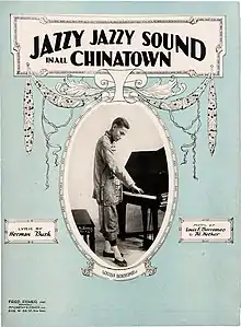 ![]() Borromeo featured in a Chinese costume in the cover art for Jazzy Jazzy Sound in All Chinatown. 1920 | |