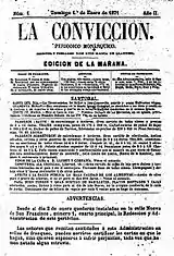 In the early 1870s Llauder's career of a publisher was already in full swing. Around 1870[44] he founded with his own money a Barcelona-based daily La Convicción,[45] acting also as a manager and editor-in-chief until the title was closed in 1873.[46] Though the paper demonstrated clear Traditionalist leaning, its political strategy appear confusing. On the one hand Llauder demonstrated much flexibility. In 1871 he advocated alliance of all opposition groupings; the call raised eyebrows of those - like Navarro Villoslada - who were surprised at having been encouraged to join ranks with the radical republicans.[47] On the other hand, Llauder demonstrated a doctrinaire position when lambasting the neo-Catholic José María Quadrado[48] by calling him a liberal disciple of Chateaubriand.[49] Scholars present different views on Llauder's position versus amalgamation with the neo-Catholics; some claim he opposed it[50] and some claim he himself approached them.[51] At that time he was already considered "prestigioso periodista".[52]