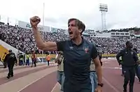 In 2015, Liga de Quito became the winner of the first stage of Ecuadorian Serie A with 47 points after earning a record of 21 unbeaten matches. Thus, he qualified for the 2015 tournament finals and won the qualification for the 2016 Copa Libertadores. After his team classified first in the regular phase with 89 points in 44 games, one point ahead of Club Sport Emelec, they played the final of the Ecuadorian Serie A 2015 with two home and away matches against Club Sport Emelec on 16 and 20 December, obtaining the sub championship after losing 1–3 and 0–0 draw against Emelec in Portoviejo and Quito, respectively, which closed his cycle in the team from the capital of Ecuador.