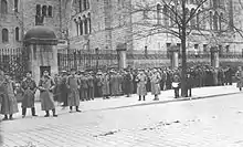 During the first decades of the 20th century Luisenschule was culturally entirely German; it formed part of the Prussian education system and worked to meet its political objectives.[84] In the 1910s the Poles considered it "gniazdo hakatyzmu", "the HaKaTa liar".[85] The staff were depicted as struggling to eradicate any cultural let alone political Polish preferences of students;[86] even private conversations held in Polish were subject to penalty measures. Few Polish girls still attending Luisenschule recollected later that in the "nienawistna uczelnia" they felt harassed and persecuted. Unable to speak Polish but unwilling to speak German, in private they spoke French;[87] over time also conversations held in French became subject to penalties.[88] During the Great War period the lessons were commenced not with the customary greetings, but with "Gott strafe England".[89]