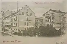Luisenschule (initially in Polish: Szkoła Luizy, later in Polish: Szkoła Ludwiki) was a female school, open in Posen in the years of 1830–1919. Until 1873 it was operated as a private establishment, managed by the Luisenstiftung foundation; afterwards it was incorporated into the official Prussian education system. Its prestigious character attracted girls from high- and mid-range bourgeoisie; the school was particularly recognized for teaching music and arts in general. Since 1841 Luisenschule operated jointly with Lehrerinnen-Seminar, teachers’ training courses. The school was designed as a German-Polish institution, though since the mid-19th century the Polish ingredient went into decline; by the end of the century Luisenschule pursued a militantly patriotic Prussian education model. Periodically the Jews formed a significant fraction of the girls. Luisenschule students who became public figures in the realm of German politics, science and arts were Auguste Schmidt, Ida Barber, Elise Ekke, Margarete Gerhardt und Hedwig Landsberg. The best known Polish graduate was Walentyna Motty, later wife of Hipolit Cegielski.