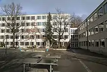 The Luitpold-Gymnasium,[1] since renamed as "Albert-Einstein-Gymnasium", is a secondary school in Munich, Germany. It is located in the Lehel city district, close to Munich's Old Town, and has a long tradition. Established by Prince Luitpold of Bavaria in 1891 as "Luitpold-Kreisrealschule" to serve the eastern part of the city and its suburbs, it originally stood in the Alexandrastrasse opposite the National Museum. The building was completely destroyed by incendiary bombing in 1944, leaving only parts of the outside walls and gymnasium (sports hall). After sharing the facilities of the Wilhelmsgymnasium, the high school was moved to the new building on Seeaustraße 1 in 1958. It introduced the Kollegstufe system in 1975, permitting an individual course of study during the last two years before graduation, and became co-educational in 1983.