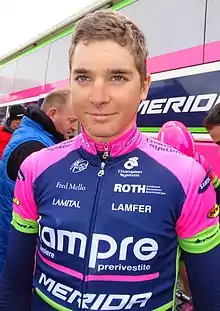 Luka Pibernik (born 23 October 1993) is a Slovenian former professional cyclist, who rode professionally between 2012 and 2020, for the Radenska, Lampre–Merida and Bahrain–McLaren teams.[4] During his professional career, Pibernik took three victories – two wins at the Slovenian National Road Race Championships in 2013 and 2015, and a stage victory at the 2016 Eneco Tour.[5][6]