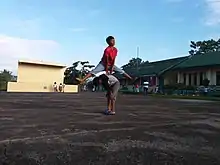 At the start of the game, one player is designated taya (it), or in this game the bakang lala (cow). The players should avoid touching or falling over the baka player while jumping over. The baka player should start with a kneeling-down position (a baka player bends over with their hands placed on his knees). All players are to jump over the baka until all the players have jumped.[3] Once the first set of jumping over the baka is done, the baka player will slowly rise up after jumping over the baka player. Only the hands of the jumper may touch the back of the person who is bent over. If a player fails to avoid contact or fall over the baka, they will replace the baka player with a kneeling position (step 3), and the game continues until the all players decide to end the game.[4][5]
