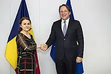 Odobescu's first foreign trip was to Chișinău in the Republic of Moldova on 20 June, at the invitation of Deputy Prime Minister and Foreign Affairs Minister Nicu Popescu, where she reiterated Romania's support for Moldova's accession to the EU.[6][7][8]