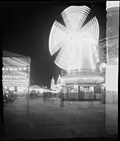 During World War II, Luna Park was a magnet for servicemen, many of whom were either treating their girlfriends to a night out or looking to meet someone.[5]: 78 The influx of servicemen also drew sex workers to the area[5]: 79 and large-scale brawls were a common occurrence, usually between Australian home defence troops and American sailors on shore leave.[5]: 76 As non-essential uses of electricity were curtailed in wartime, the park's neon lights were disconnected and many ride facades were dimmed. The park's external lights were also 'browned out' in case of a Japanese sneak attack on Sydney.[5]: 78