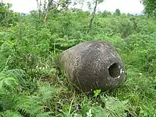 Lungzubels are not confined to a particular place but are spread out in all Biate inhabited areas in the southwestern part of Dima Hasao district and the adjoining state of Meghalaya across the Kangkalang (Kopili) river mainly in the Saipung Elaka, East Jaintia Hills district. Dr.B.Pakem, a renowned writer and former Vice-Chancellor of North Eastern Hill University also wrote that these round stones and hollow ground resemble those found in the nearby Sumer Elaka, between Umkyurpong and Kseh villages in Meghalaya. He believed that it might have been the sacrificial or dancing places of the Biates' forefathers in the past.[1] In Dima Hasao, the most well-known location is a small Biate village called Khobak, about 130 km from the district headquarters Haflong. Lungzubels are also found in some other areas albeit in small numbers. It is widely believed that these places may also have been inhabited by the Biates in olden days.