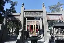 Guanlin Tample:The Guanlin Temple in Luoyang is located at 2 Guanlin South Street. It is the burial place of the head of Guan Yu (his body is buried in Dangyang, Hubei).[6] Guanlin Temple was originally built during the Ming dynasty Wanli Emperor period and later expanded during the Qing dynasty Qianlong Emperor period. The existing buildings are mainly from the Ming Dynasty.[7]