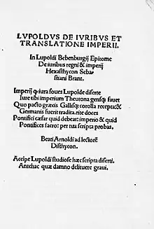 - De iuribus et translatione imperii (in Latin). Strasbourg: Matthias Schürer. 1508.