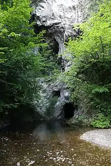 The Lurgrotte karst cave is the largest cave in the Eastern Alps of Styria, Austria. It is located about 16 km (9.9 mi) north of Graz and crosses the Tannenben karst region. The cave has two accessible entrances, one at the village of Semriach and the other at the village of Peggau.[2] At the Semriach entrance, the Lur River sinks into the cave. At the Peggau entrance, the Schmelz River emerges from within the cave, flowing to the west and eventually joining the Mur River.[2][3]