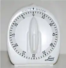 The company's timer line includes the Minute Minder timers, the modern versions thereof introduced by the Lux Clock Manufacturing Company around 1950. The original timers were offered in white with red numerals, but different colors were later added to the line. The timer line also includes digital timers and kitchen timers made of anti-microbial materials.