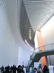 Architect Christian de Portzamparc's initial idea was to mark the entrance into the world of music through a natural filter. This idea took the form of 823 facade columns made of white steel, arranged in three or four rows. The interior row of columns containing technical facilities, the second supporting the windows, and the third being of a static nature.