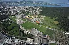 Luzern Allmend/Messe railway station (German: Bahnhof Luzern Allmend/Messe) is a railway station in the city of Lucerne, in the Swiss canton of Lucerne. It is located adjacent to the Swissporarena, in the south of the city. The station is on the Brünig line of the Zentralbahn railway company, and is used by trains of the Luzern–Stans–Engelberg line.[2][3][4]